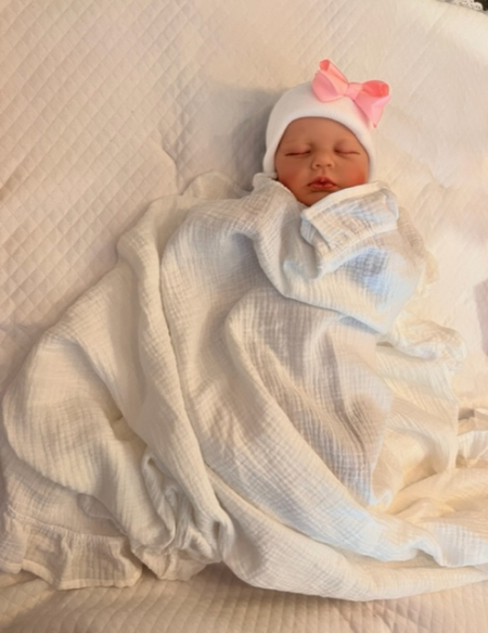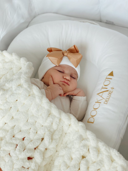 4. Newborn muts wit met brons kleurige strik van lint extra warm
