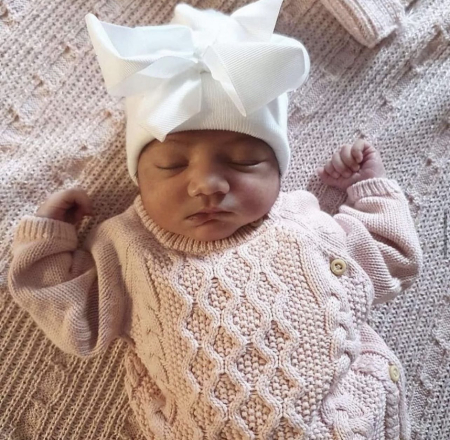 2. Newborn muts met mini strik van lint roze extra warm
