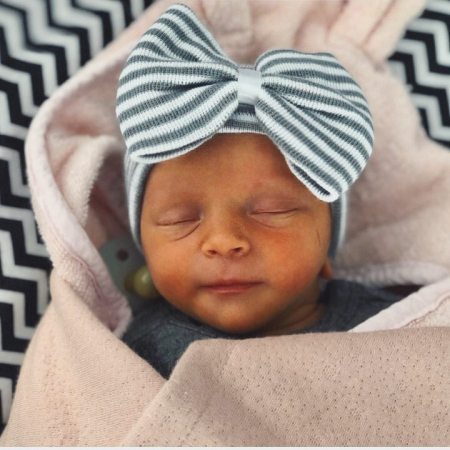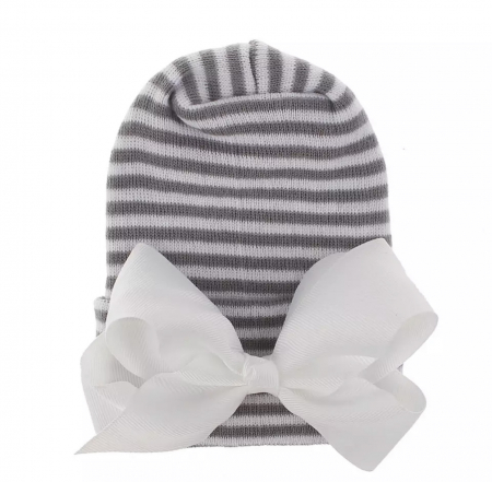 8. Newborn muts met strik grijs wit gestreept
